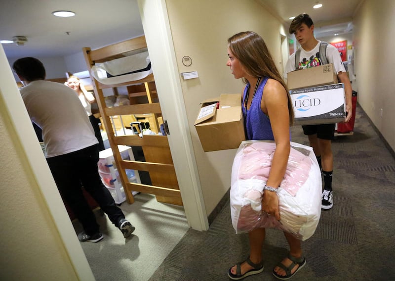 SALT LAKE CITY— In an upper-story room of a residence hall on the University of Utah campus Thursday, three first-year roommates who had just been introduced, were attempting to divvy up the limited wardrobe and closet space in their dorm room.