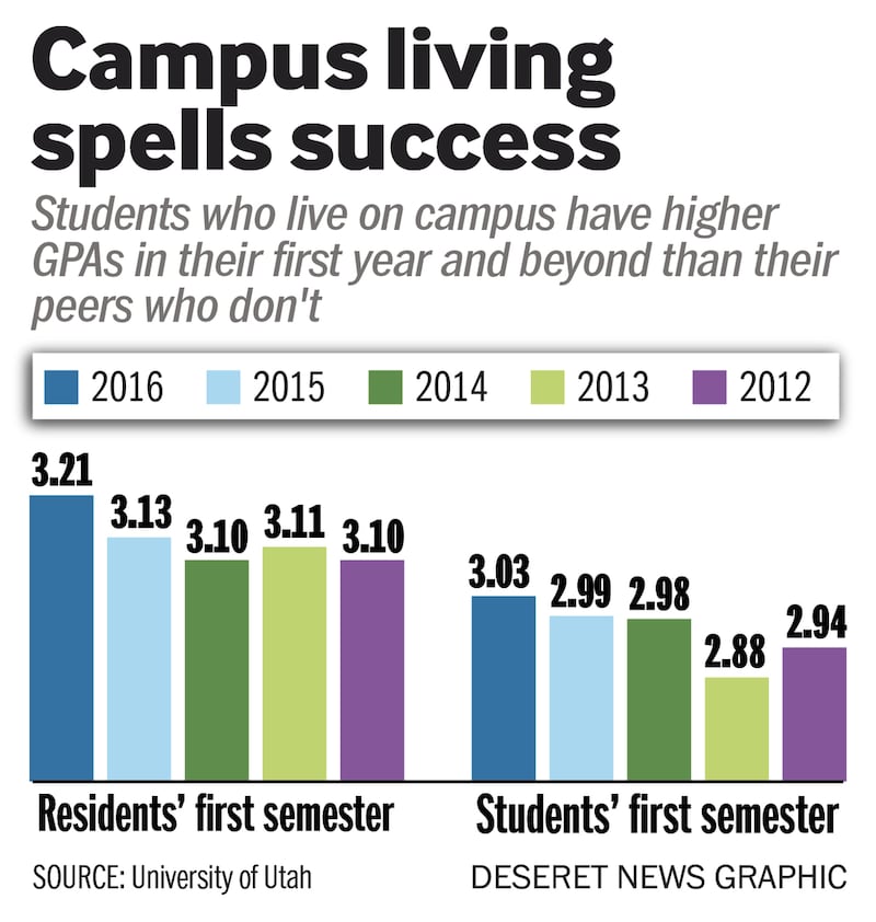 Data recently presented to the university's board of trustees shows that U. students who live on campus have higher grade point averages throughout their college careers than peers who live off campus. Moreover, students who live on campus are 12 percent more likely to complete their college degrees.