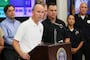 Operation Rio Grande began on Monday, Aug. 14. By Tuesday night, the block looked like occupied territory. Patrol cars and SUVs lined up along 500 West, too many to count. Chain-link fencing surrounded the median. Mobile surveillance cameras dotted the area. One mobile command center — a police RV — sat in the middle of 500 West. Another sat behind a fence near the Rio Grande building, where people stood in line doing paperwork under a temporary gazebo.