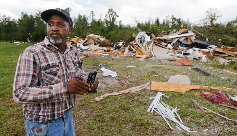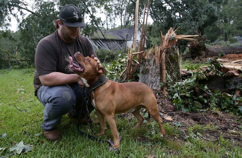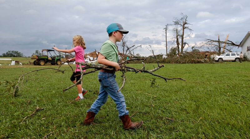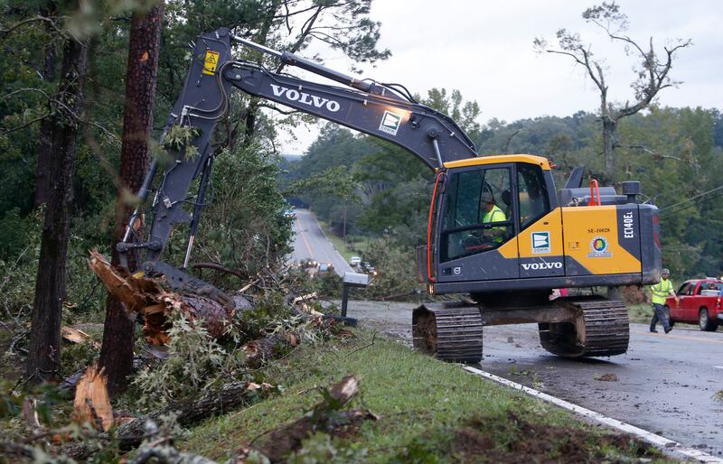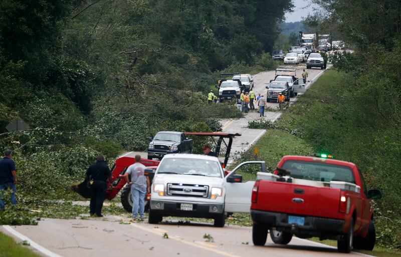 Photographs published online by the Tuscaloosa News in Alabama showed huge trees splintered and toppled, houses with shingles torn away and one mobile home so shattered it was barely recognizable. Men with chain saws were clearing downed trees from roads after the storm passed.