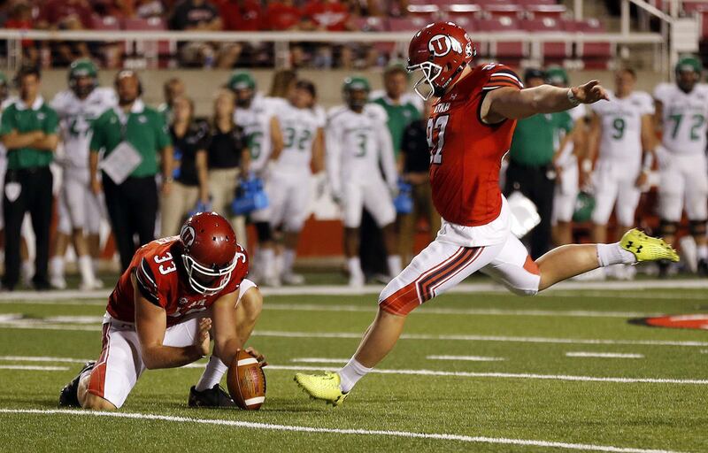 Today he’s kicking field goals and extra points for the University of Utah football team and making his mark on a national stage. After just two games, he’s leading the nation in three different placekicking categories — he’s tied for first in field goals made (7), field goals per game (3.5) and percentage (100, after going 7 for 7 through Utah's first two games).