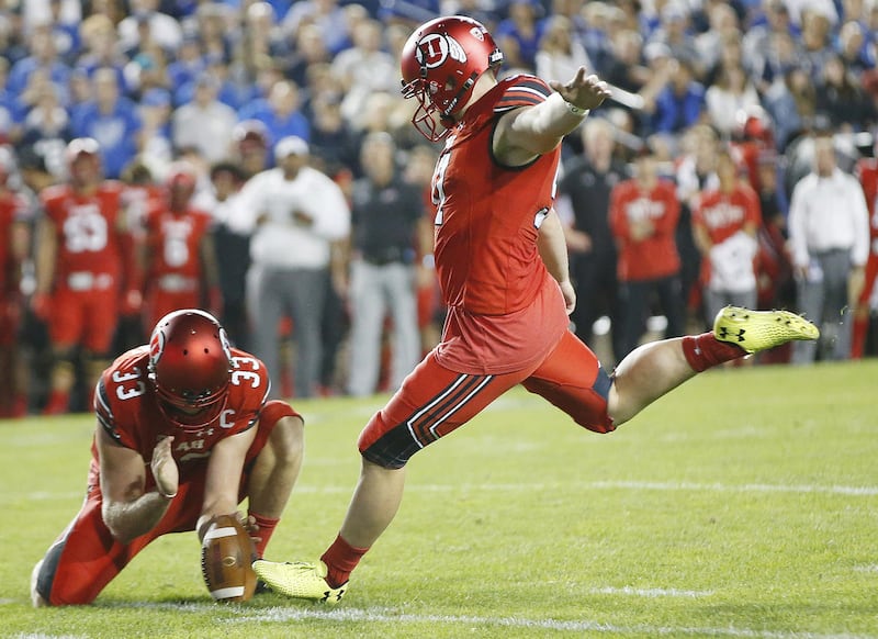 Gay may have only one year at Utah (he’s going to petition to the NCAA after the season to try to get a year back) and from there he may look to a pro career. He’s been kidded about being a “mini-Janikowski” (Gay is 6-1, 220; Oakland kicker Sebastian Janikowski is 6-1, 260) and Maas wouldn't be surprised, saying “he’s got an incredibly powerful leg.”