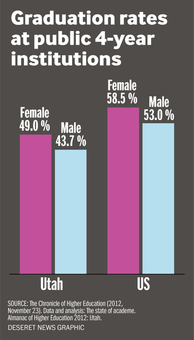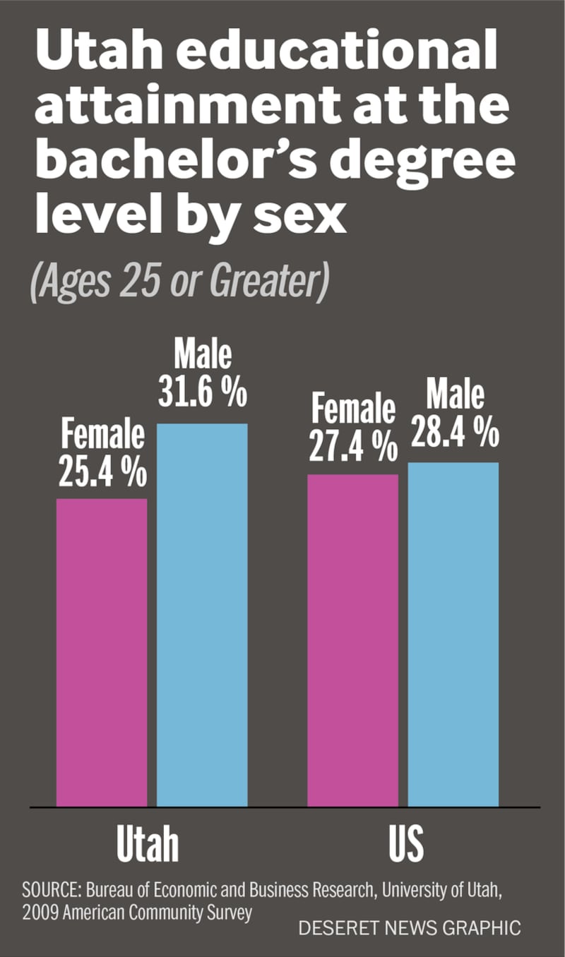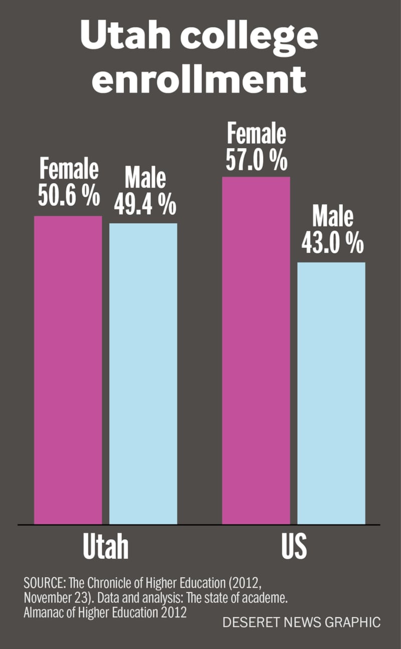 In Utah, only 53.3 percent of high school graduates (men and women) go on to college, the seventh-lowest rate in the nation.