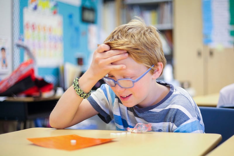 Abby’s blonde pig tails sway as she looks back and forth from her bingo card to Schiess: “Go to school on time, have a positive attitude, go back and check your answers,” she pauses to move a candy Smarties off the words underneath, “no one gets all the answers correct, and make sure you understand what the question is asking.”