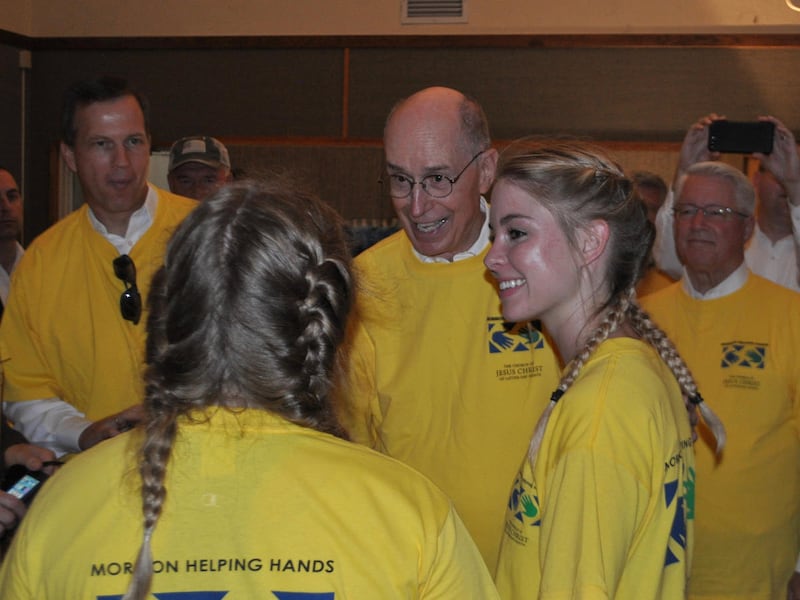 Saturday afternoon, the Golden Gate building also hosted President Henry B. Eyring, first counselor of the LDS Church’s First Presidency, who is visiting areas left in Irma’s devastating wake. Friday he was in Puerto Rico and St. Thomas; he began a weekend of Florida visits by stopping at the Naples meetinghouse, visiting a neighborhood work project and then returning for a 45-minute devotional with 350 volunteer workers before continuing on to Jacksonville for a late work-site visit in an area suffering through historic flooding.