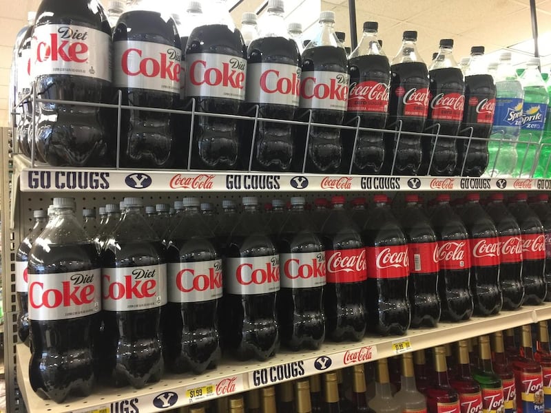 Students took photos of soda fountains that are now stocked with caffeinated drinks. They pointed at the coolers with regular Coke and Diet Coke. One student gave his friends a “Dude!” while noticing the new beverage section at a fast-food joint at BYU.