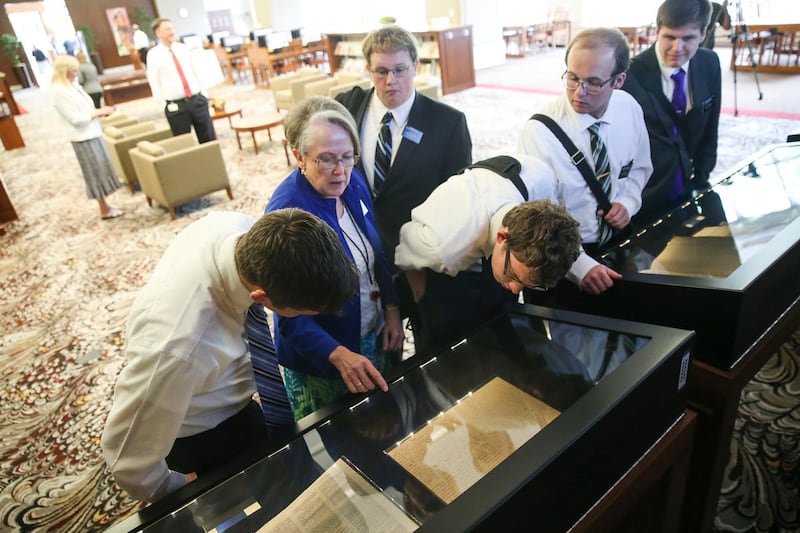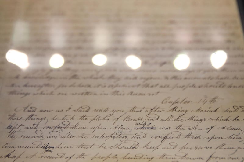SALT LAKE CITY — The printer's manuscript of the Book of Mormon was on display in Utah for the first time in history Thursday, and people lined up at the LDS Church History Library to see it.