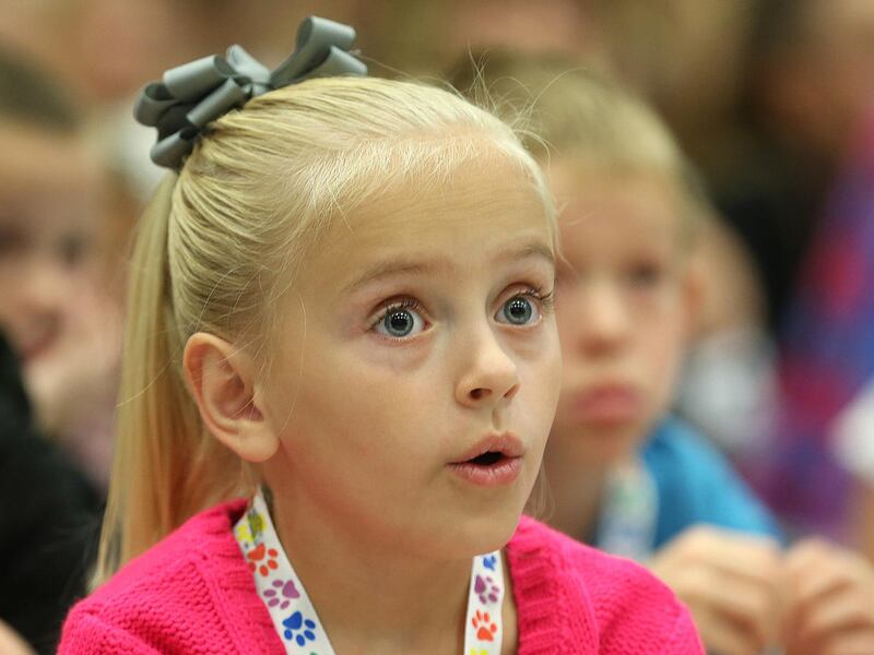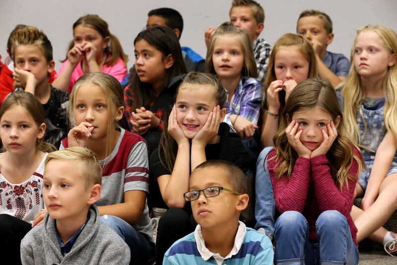 During the assembly, the students at Bluffdale had the chance to talk to Moore Elementary Principal Patricia Myers and a class of fifth-graders. The Bluffdale students asked a number of questions about the evacuation and how they were affected by the hurricane.
