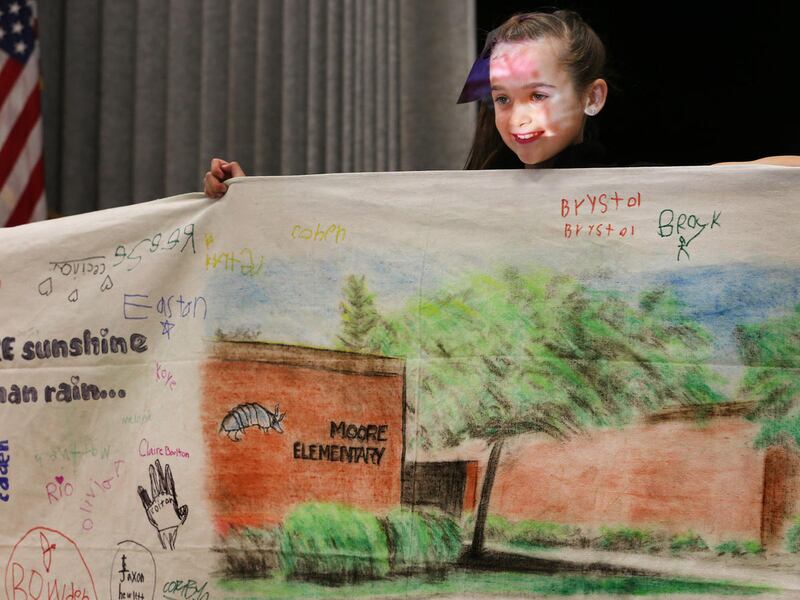 The fifth-grade students at Moore suggested things like new books and class supplies, as well as replacement gym equipment.