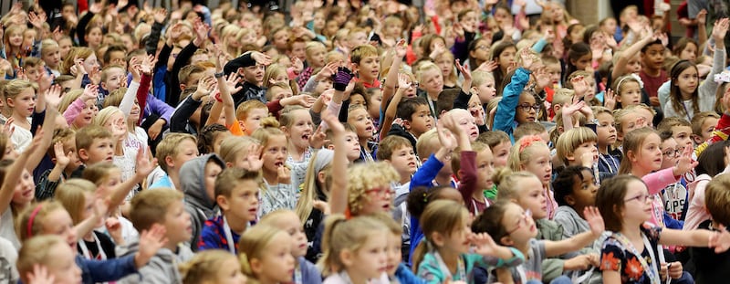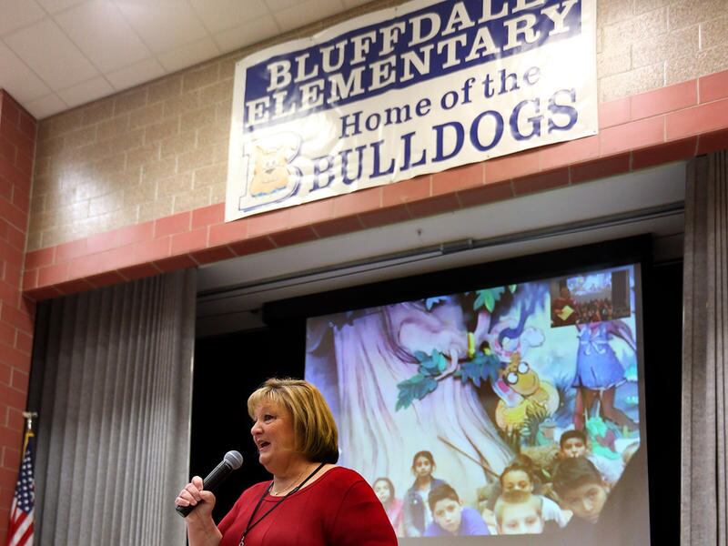 BLUFFDALE — On Friday morning, hundreds of students from Bluffdale Elementary School crowded into their school's gymnasium to make a video conference call. On the other end of the call were students in Houston.