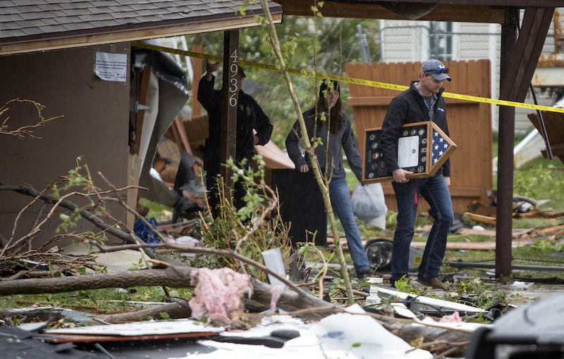 "Once the pressure changed, the windows all blew out at the same time, and that's when everything started flying around the room," she said. "We had three people's roofs piled up in front of my door and a swamp cooler in the living room. We didn't own a swamp cooler."