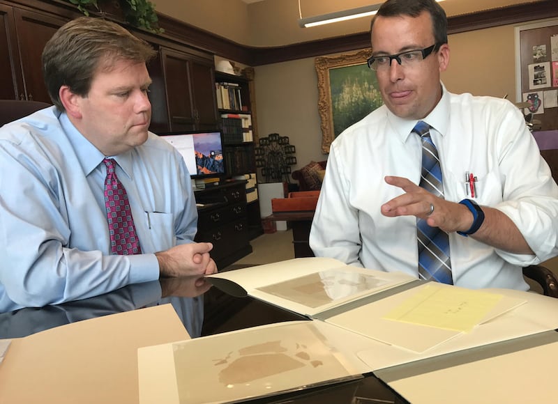 Latter-day Saints believe Joseph Smith translated the Book of Mormon with divine power, dictating the words of the ancient book to various scribes over several months before publication in 1830. With leafs and fragments of the original manuscript in protective sheets and spread out on a table, Neilson and Jensen spoke of the manuscript's provenance and the forthcoming project.