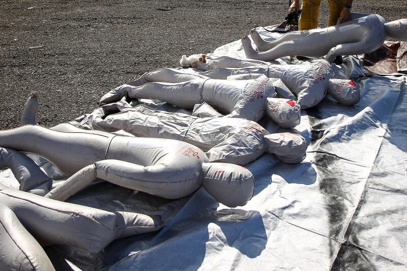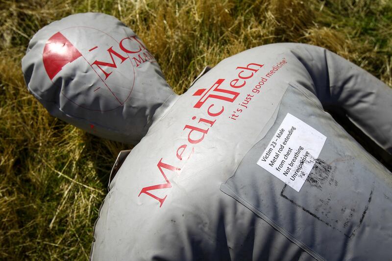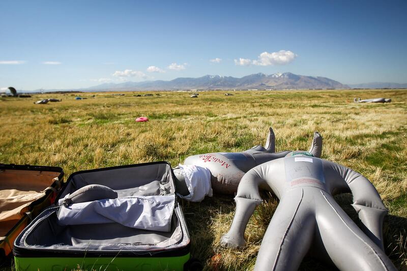 Nearby, other emergency responders sifted through luggage and pieces of fuselage strewn across a field. Their job was to begin triage for 65 volunteers and dozens more inflatable dummies dressed to show varying degrees of injury.