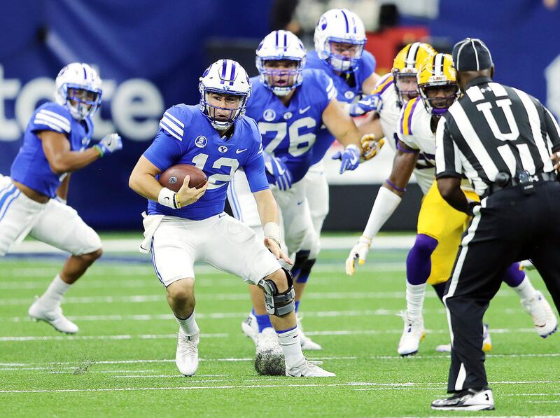 BYU had minus-5 yards rushing. LSU outgained BYU 479 to 97 yards and had 26 first downs to BYU’s 6. The 97 total yards is the fewest by a BYU offense since Iowa State in 1974.