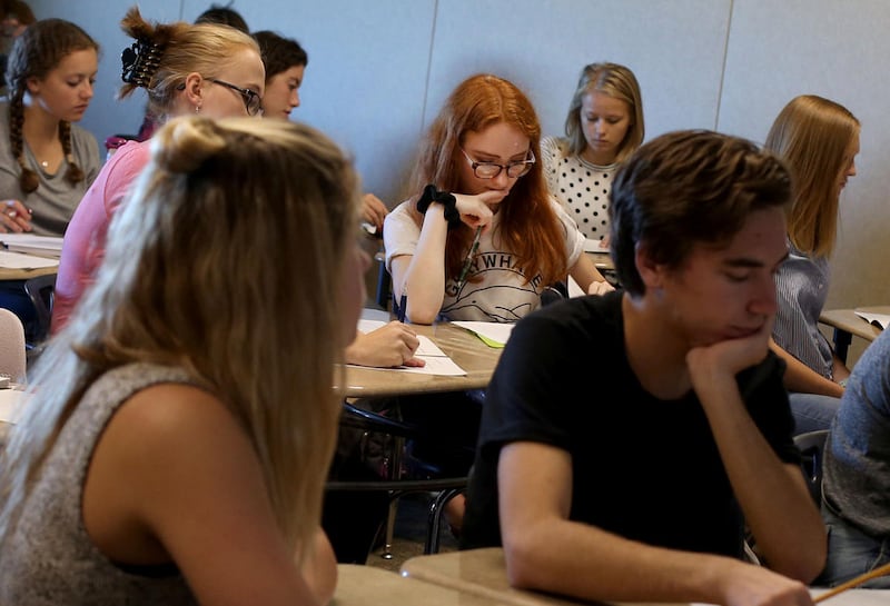 Students attend Jodi Ide's World Religions class at Brighton High School in Cottonwood Heights on Thursday, Aug. 24, 2017. | Laura Seitz, Deseret News