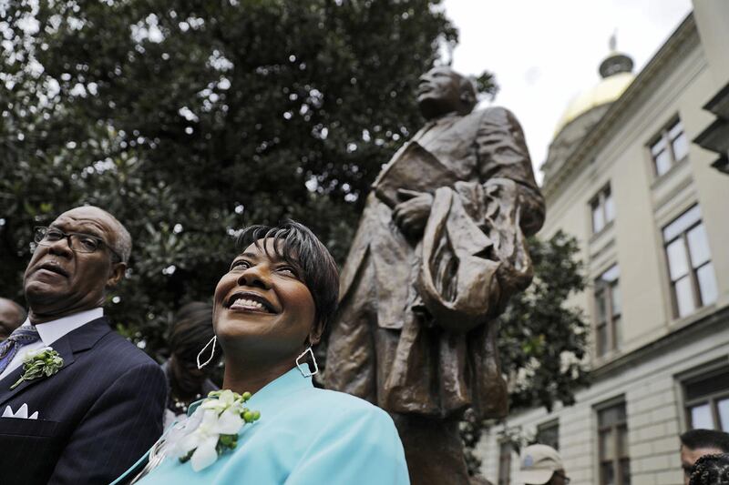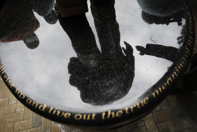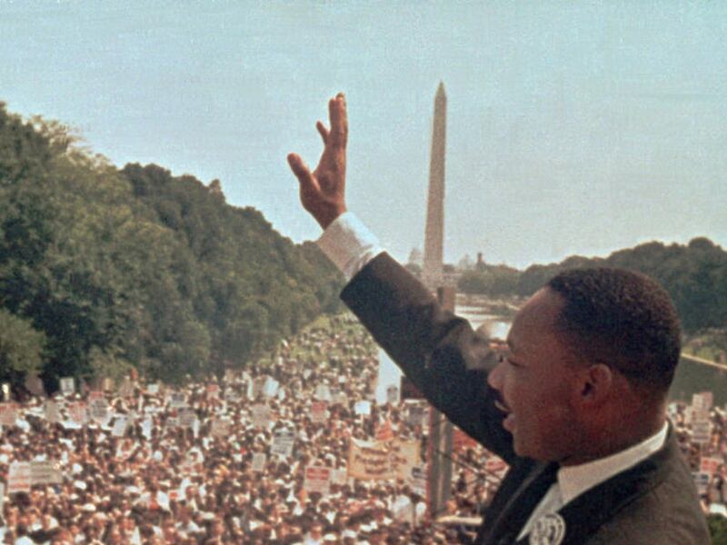 The Rev. Martin Luther King Jr. acknowledges the crowd at the Lincoln Memorial for his "I Have a Dream" speech during the March on Washington in this Aug. 28, 1963 file photo. | Associated Press