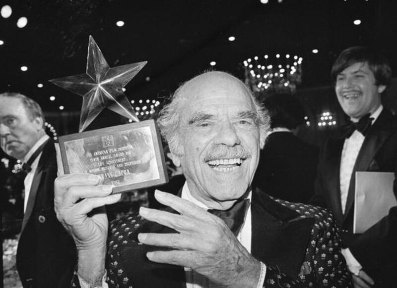 Director Frank Capra, smiles broadly as he holds the Life Achievement Award he was presented Thursday night by the American film Institute during the Tenth Annual American film Institute's Life Achievement Award Dinner at the Beverly Hilton Hotel in Los Angeles, March 5, 1982. | Nick Ut, Associated Press