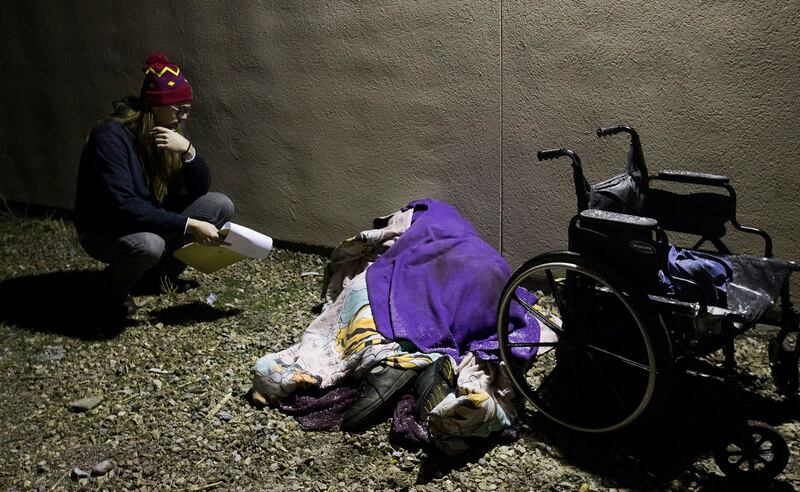 The group was participating Friday in a state data collection effort called a Point-in-Time Count, which occurs every January. It's an initiative meant to help communities search out who among them has no place to stay. The data is eventually reported to the U.S. Department of Housing and Urban Development.