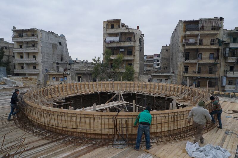 Last autumn, he returned home and fixed up his apartment on the second floor where he now lives with his wife and youngest son, Hamza. He relies on generators set up in the neighborhood because like most other parts of eastern Aleppo, there's no electricity in Sukkari — the government is still working to reinstall utility poles. But running water has been restored — although it's available only every other day, as is the case throughout the city as a whole.