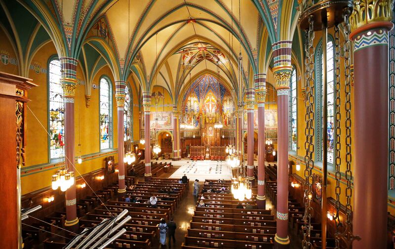 The music, sometimes joined with about 20 voices in the choir, swelled to fill every inch of the spacious and colorful Gothic-inspired cathedral at times, drowning out all other sound.