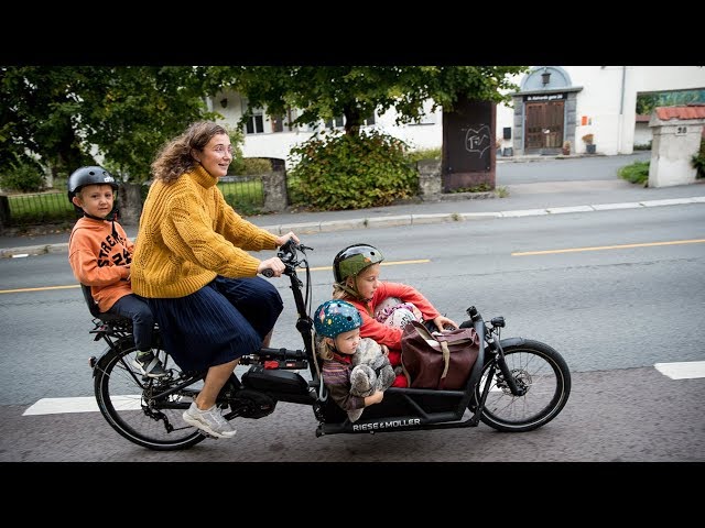View 13 Items Kari Anne Solfjeld Eid loads up with three of her children, Ragnar Eid-Lia, 5, Barbro Eid-Lia, 3, and Moa Hansen Solfjeld Eid, 11, in the familys electric-assist cargo bike outside their apartment in Oslo, Norway on Thursday, Aug. 16, 2018.