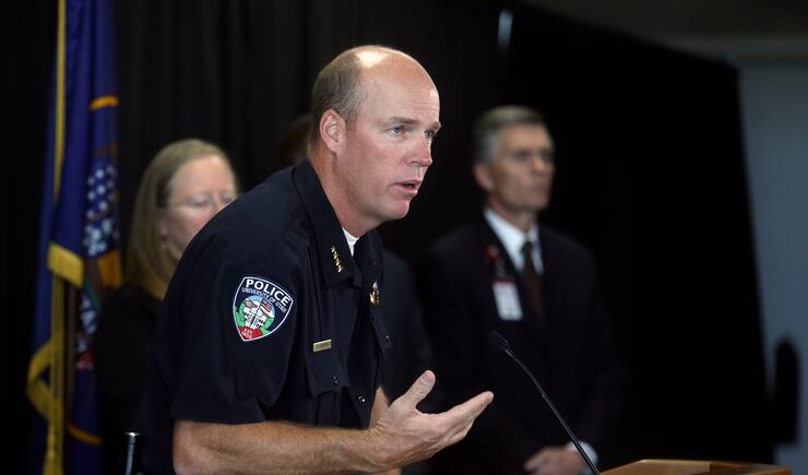 After midnight Tuesday morning, based on a tip, Salt Lake police spotted Rowland near 600 South and 250 East. The officers ran after Rowland, who entered Trinity AME Church through a back door. Officers with K-9s followed him inside where they heard a "commotion" from upstairs and a gunshot, said Salt Lake Police Chief Mike Brown.