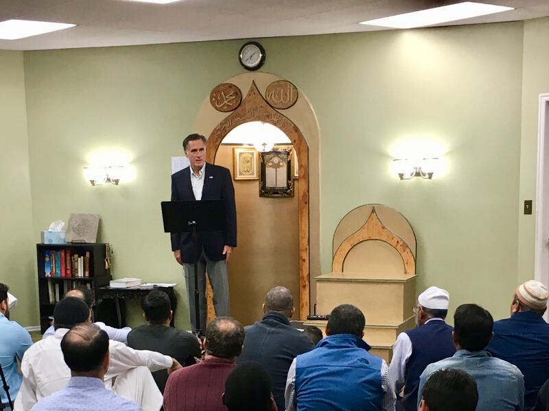 Romney, he said, was the first Republican to speak at the mosque. Democrats Ben McAdams, the Salt Lake County mayor running for Congress, and Sim Gill, the Salt Lake County district attorney seeking re-election, visited earlier.