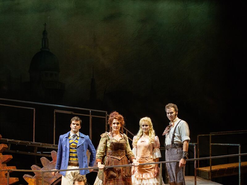 And it is a truly horrible tale, one the ensemble laid out in Saturday evening’s opening number, “The Ballad of Sweeney Todd.” Benjamin Barker, the London barber sentenced to 15 years hard labor for the crime of being married to a pretty wife, has returned to kill Judge Turpin — the man who destroyed his life and family. Turpin is also the guardian of Barker’s, now Sweeney Todd’s, daughter Johanna.