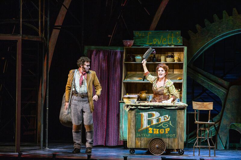 Todd, the demon barber himself, returns to London for bloody revenge, pining for his wronged wife Lucy, but Mrs. Lovett gets it right when she sings, “Could that thing have cared for you like me?” No, whatever Todd may think, his match is in the cheerful and chatty Mrs. Lovett. Unlike him, she’s not bloodthirsty — just opportunistic — and that she would extend her big-hearted ways to a grim murderer should have kept him out of trouble. But alas.