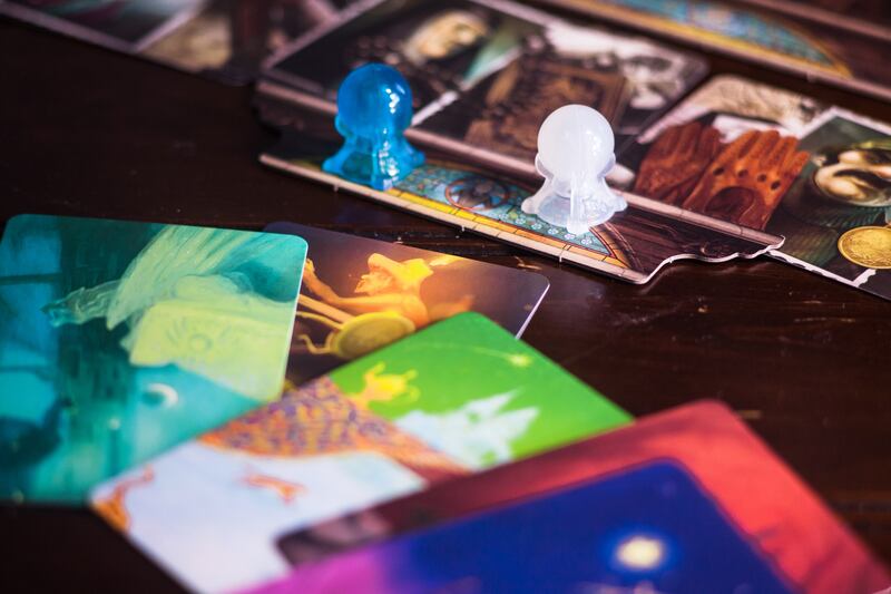 Expect a cooperative game of interpreting abstract ideas. Through surreal, dreamlike art, a ghost player delivers "visions" to psychics around the table, who are attempting to identify the ghost's murderer. The twist: The psychics can speak among themselves, but the ghost has to remain completely silent, communicating only through visions.