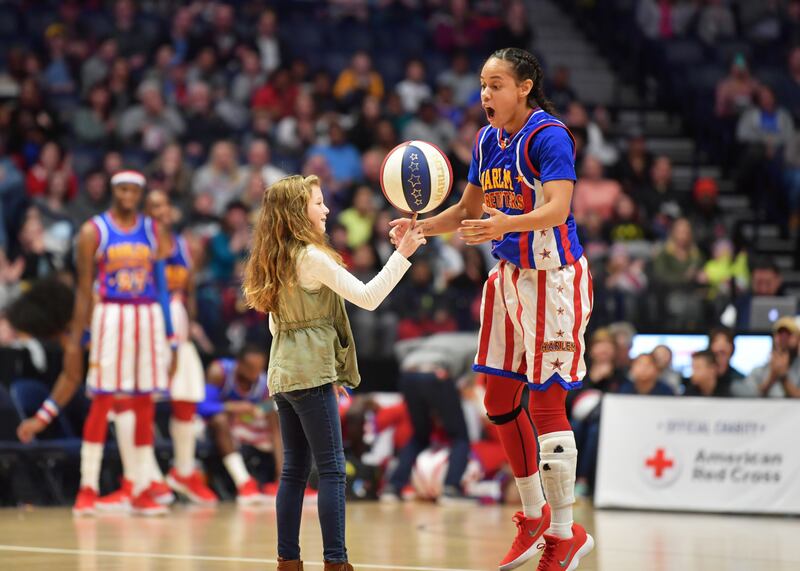 Part of that mission means that the Globetrotters are ambassadors of goodwill. They reach out to communities, often visiting hospitals and promoting bullying prevention in schools. For Green, that service comes full circle. She grew up volunteering at her local homeless shelter with her father, and she’s grateful she can continue to make an impact.