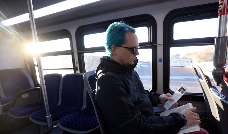At first glance, other than the mask (and his blue hair), nothing about Weidmann, or his decision to commute an hour and a half to work, is remarkable. But in truth, he is part of a small percentage of Utahns — between 2 and 3 percent statewide — who regularly take public transportation. The logic behind his decision-making may be the key to solving one of the most vexing problems along the Wasatch Front: how to clean the smoggy air that hovers over the valley during the winter.
