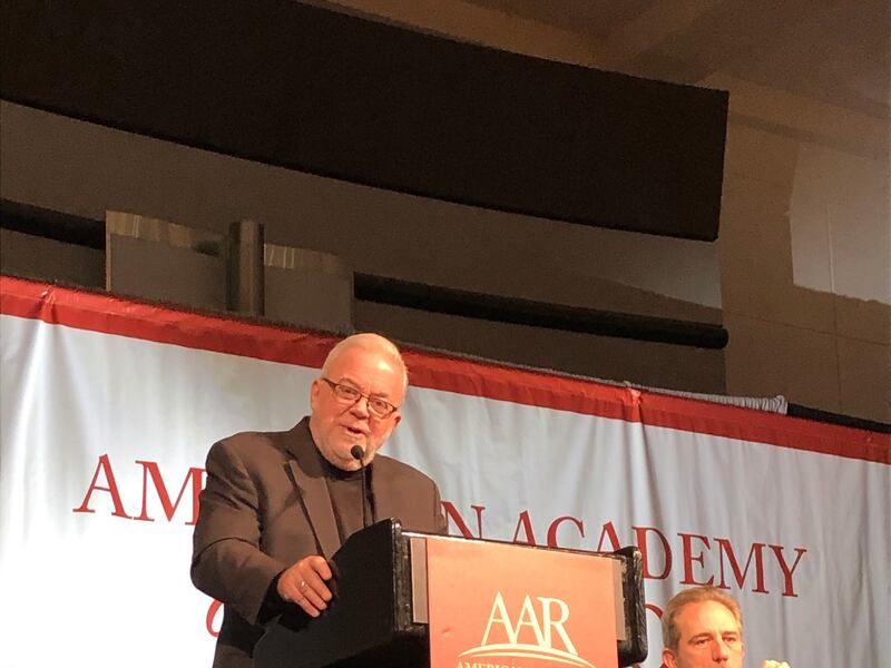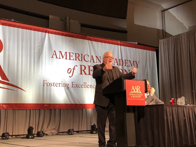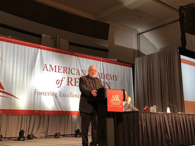 "An elder in my home church took me aside and said, 'Son, you have to understand. Christianity has nothing to do with racism. That's political and our faith is personal,'" Wallis recalled during his keynote address at the American Academy of Religion's annual conference on Nov. 18.