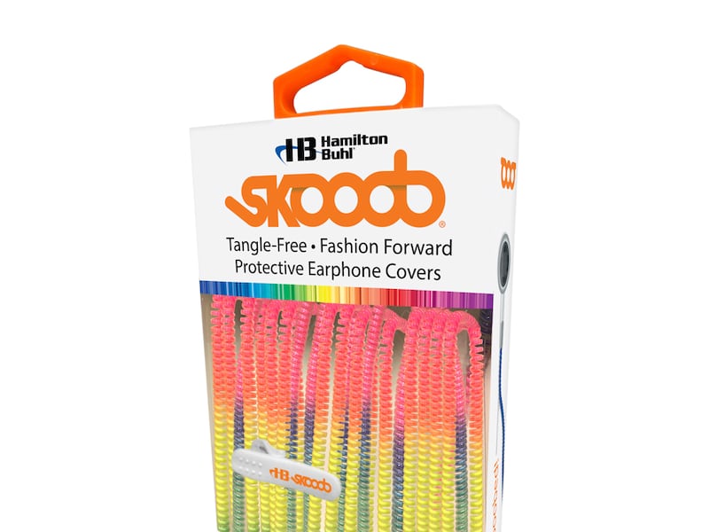 Skooob earbud covers are tangle-free and colorful. Just wrap them onto your favorite earphones or headphones and no more mess! MSRP $6.95-$8.95.