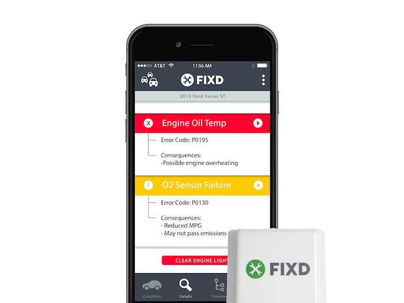 FIXD Diagnostic Sensor works with a smartphone app to tell you what that check engine light means and monitor vehicle for problems. Plug it in. MSRP $59.99.