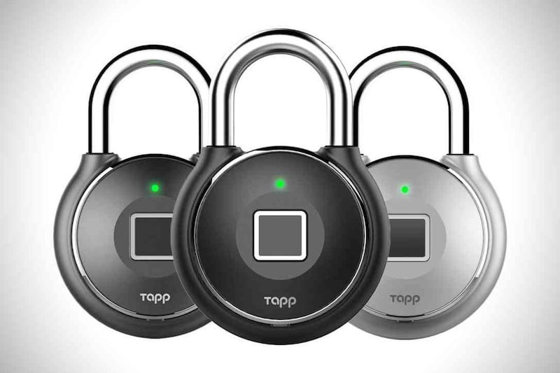TappLock fingerprint smart padlock can be unlocked by fingerprints (it can store multiple), a rhythm of your choice or remotely with the app. You can also give remote, temporary access to others. $99.