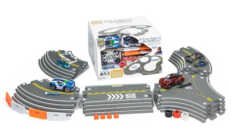 Modarri Delux Street Track bundle lets kids build the track and the cars. Customized and great fun for all ages. MSRP $69.99. Additionally, Modarri has many different options, prices.