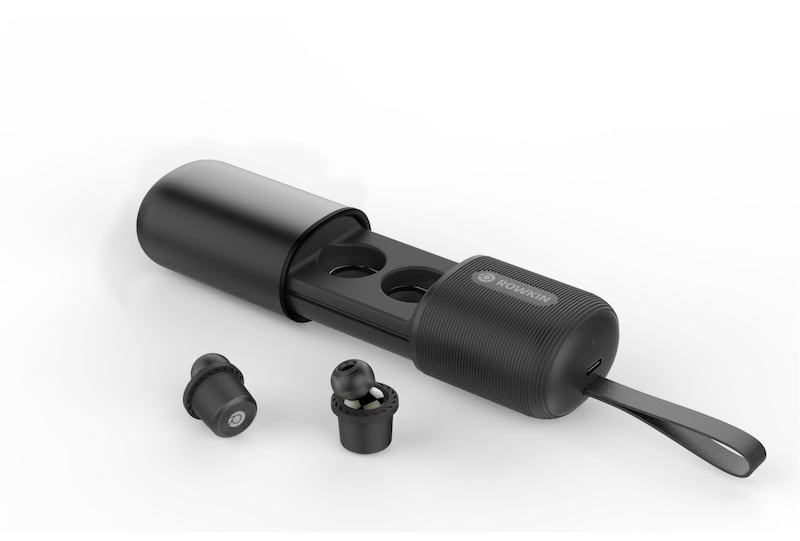 Rowkin Ascent Charge+ True Wireless Headphones, the Qi pad will charge the earbuds and other mobile devices, and the earbuds can hold their charge more than 50 hours. And in case you lose these tiny sound powerhouses, they have a locator app to help you keep track of them. MSRP $139.99, micro version $99.99.