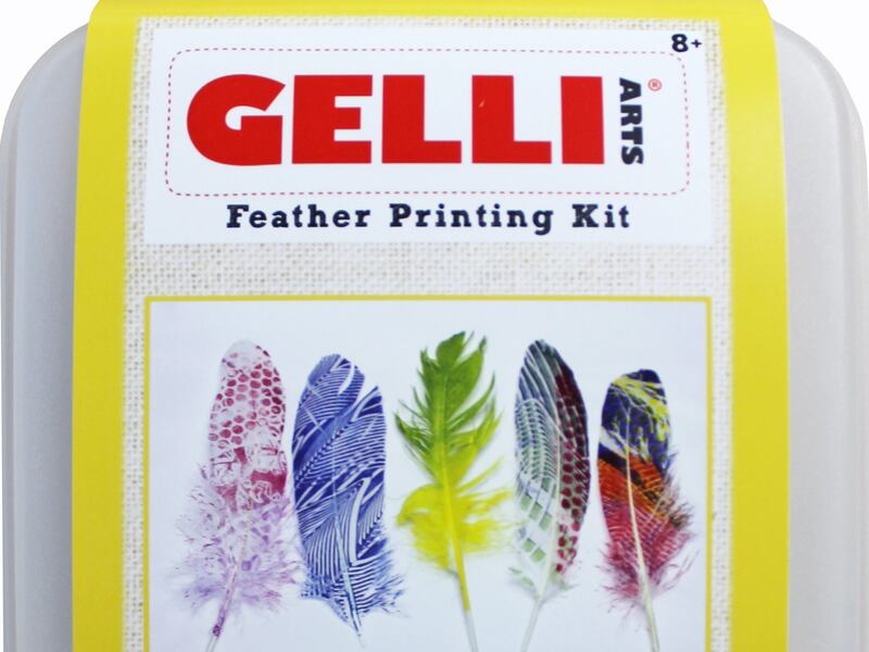 Gelli Arts Feather Printing Kit, has everything to create unique feathers. Or try a different kit and print paper quilts, holiday cards, or more. Great variety, fun for crafty kids. Ages 8+. Varied prices. Feather Kit $21.99.