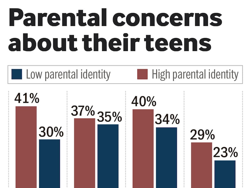 Those identifying strongly as parents were also more concerned about their teenagers’ grades, trouble in school, social lives/friends and also their mental health.