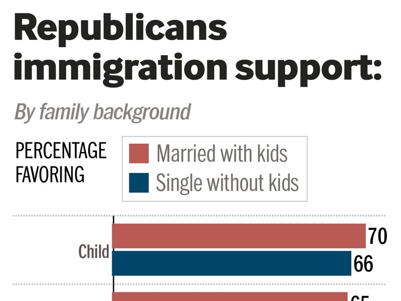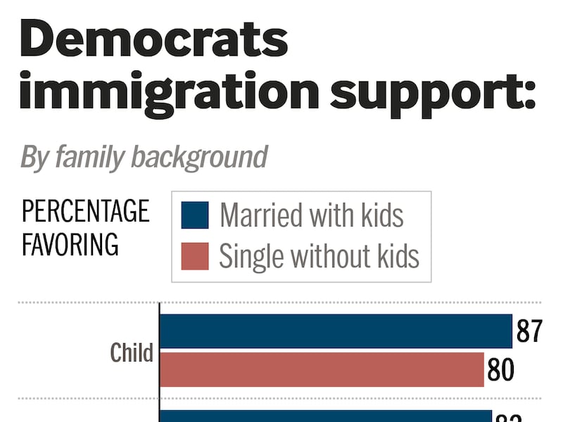 “Single respondents are more likely to favor sponsorship for immigration of all of the other extended family categories (but not spouses and children),” the report says. “This pattern is exactly the same for both Democrats and Republicans. ... Again, while it is difficult to interpret motivations for respondents and their beliefs about questions, these results are consistent with the idea that one’s family experience leads one to think about family connections in different ways.”