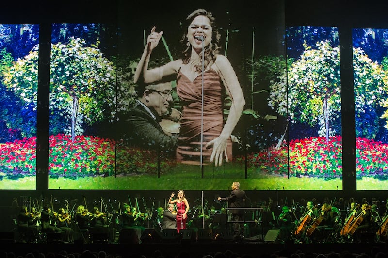 But Bocelli wasn’t done yet. In fact, with only a few numbers left to go, the tenor introduced yet another guest artist, former “American Idol” contestant and powerhouse vocalist Pia Toscano. The singer channeled her inner Celine Dion with her rendition of “All By Myself,” giving all in the crowd hope for a performance of “The Prayer” — Bocelli’s duet with Dion that earned him a Grammy nomination in 2000.