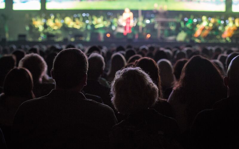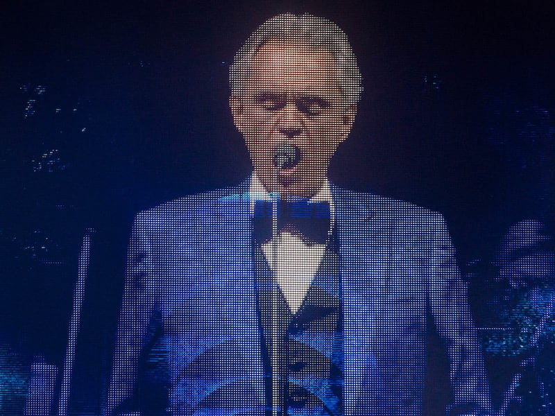Although backed by a full orchestra and choir, Bocelli sang the first few notes of his performance without accompaniment. He stood still as a statue, poised with his arms at his side. With his eyes shut tight, the expression was in his eyebrows — little crescendos and decrescendos that raised as he held onto a note and lowered as he completed a phrase. He must have held the final note of his opening number for at least 10 seconds — and it would be the first of many long, impressive notes to linger throughout Vivint Arena Thursday evening.
