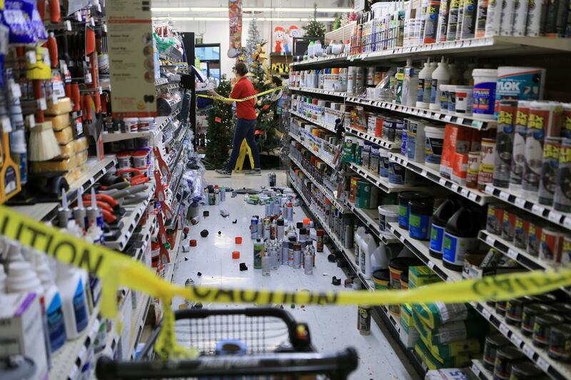 The quake broke store windows, knocked items off shelves, opened cracks in a two-story, downtown building, disrupted electrical service and disabled traffic lights, snarling traffic. It also threw a full-grown man out of his bathtub.