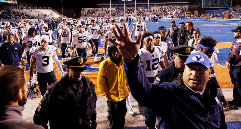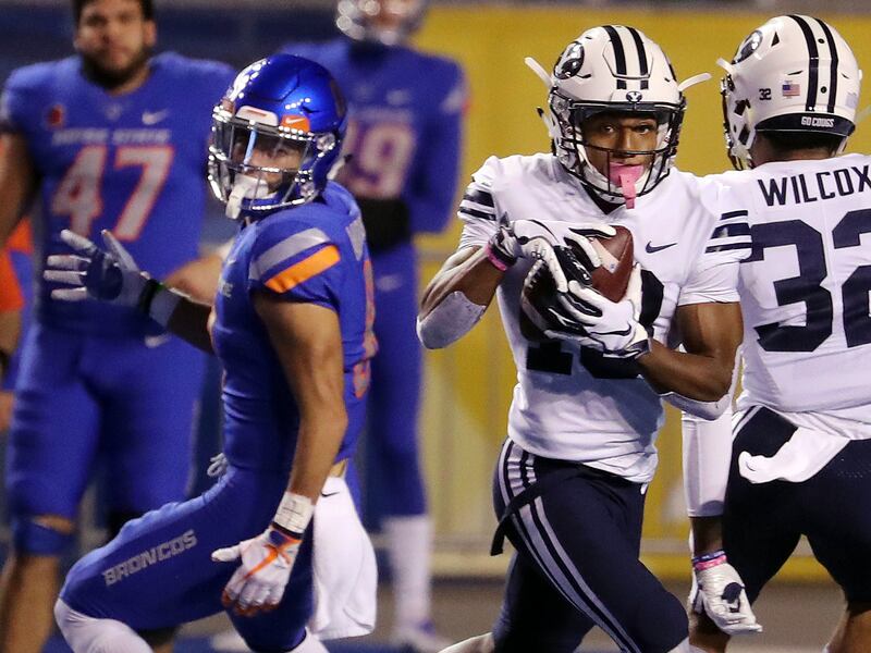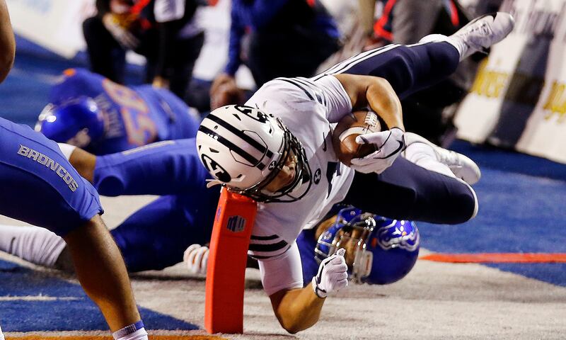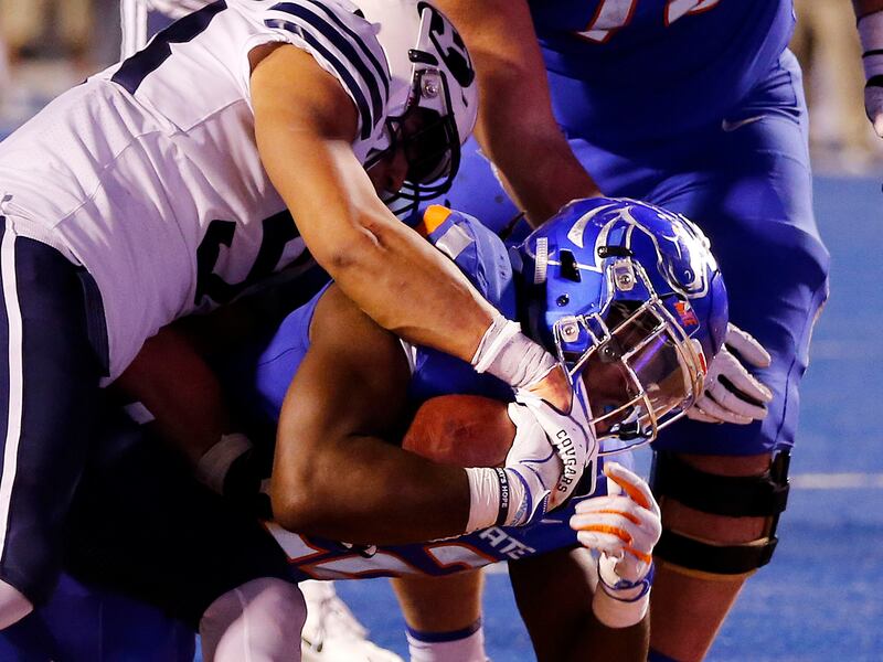 Those holding penalties, on Tristen Hoge and Brady Christensen, came after Boise State had sacked freshman quarterback Zack Wilson four times for losses totally 30 yards in the first half. After trailing BSU 14-0, the Cougars managed a pair of Skyler Southam field goals to close 14-6 by intermission.