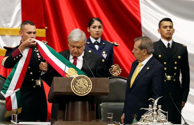 MEXICO CITY — Andres Manuel Lopez Obrador took the oath of office Saturday as Mexico's first leftist president in over 70 years, marking a turning point in one of the world's most radical experiments in opening markets and privatization.