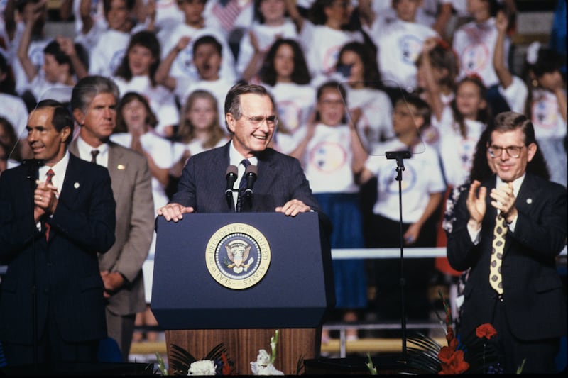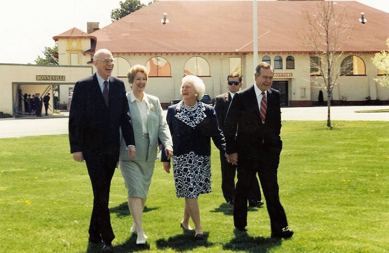 In 1992, during his third year as the nation's president, Bush traveled to Utah and met with President Gordon B. Hinckley and President Monson.
