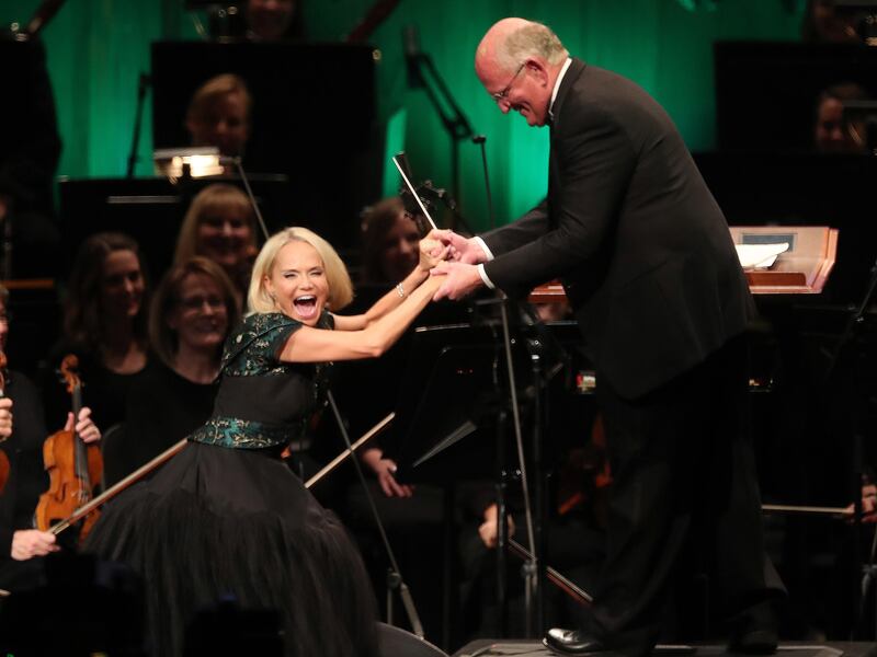 After Chenoweth’s spirited performance, the Orchestra at Temple Square performed selections from “The Nutcracker.” Once the orchestra finished planting visions of sugarplums in people’s heads, Chenoweth sang “The Christmas Waltz,” taking the song’s name to heart as she danced with one of the choir members.
