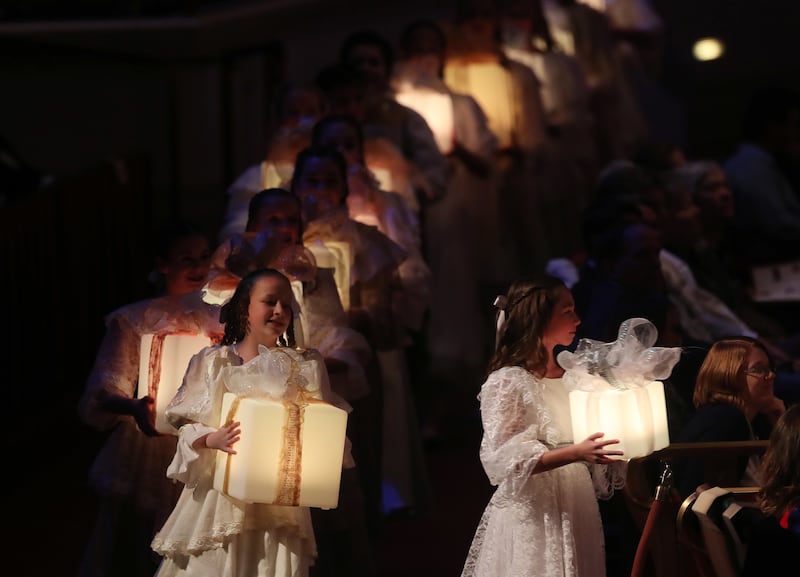 “They are my angels. Christmas is all about angels — unsung heroes that change us for the better,” she said before singing “Angels Among Us.” After Chenoweth’s voice soared on “What Child is This?” a video of people throughout the world reciting verses from Luke 2 filled the Conference Center.