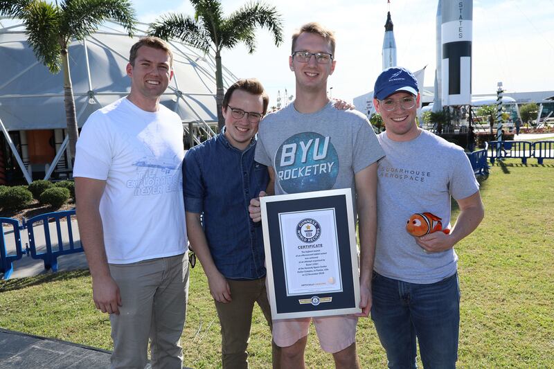 Although his first dream was dashed, Lawless, along with three other members of the BYU Rocketry team — Riley Meik, Alex Laraway and Mark Johnson — realized a new dream last week by setting a new Guinness World Records title for highest launch of an Alka-Rocket in the 2018 Bayer Alka-Rocket Challenge in Florida.
